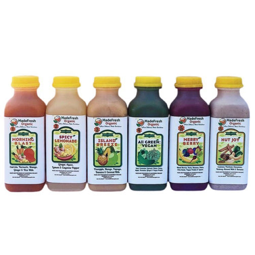 This pack contains an assortment of 30 juices and smoothies of 16 fl oz each. All our products are vegan, gluten-free, and dairy-free: